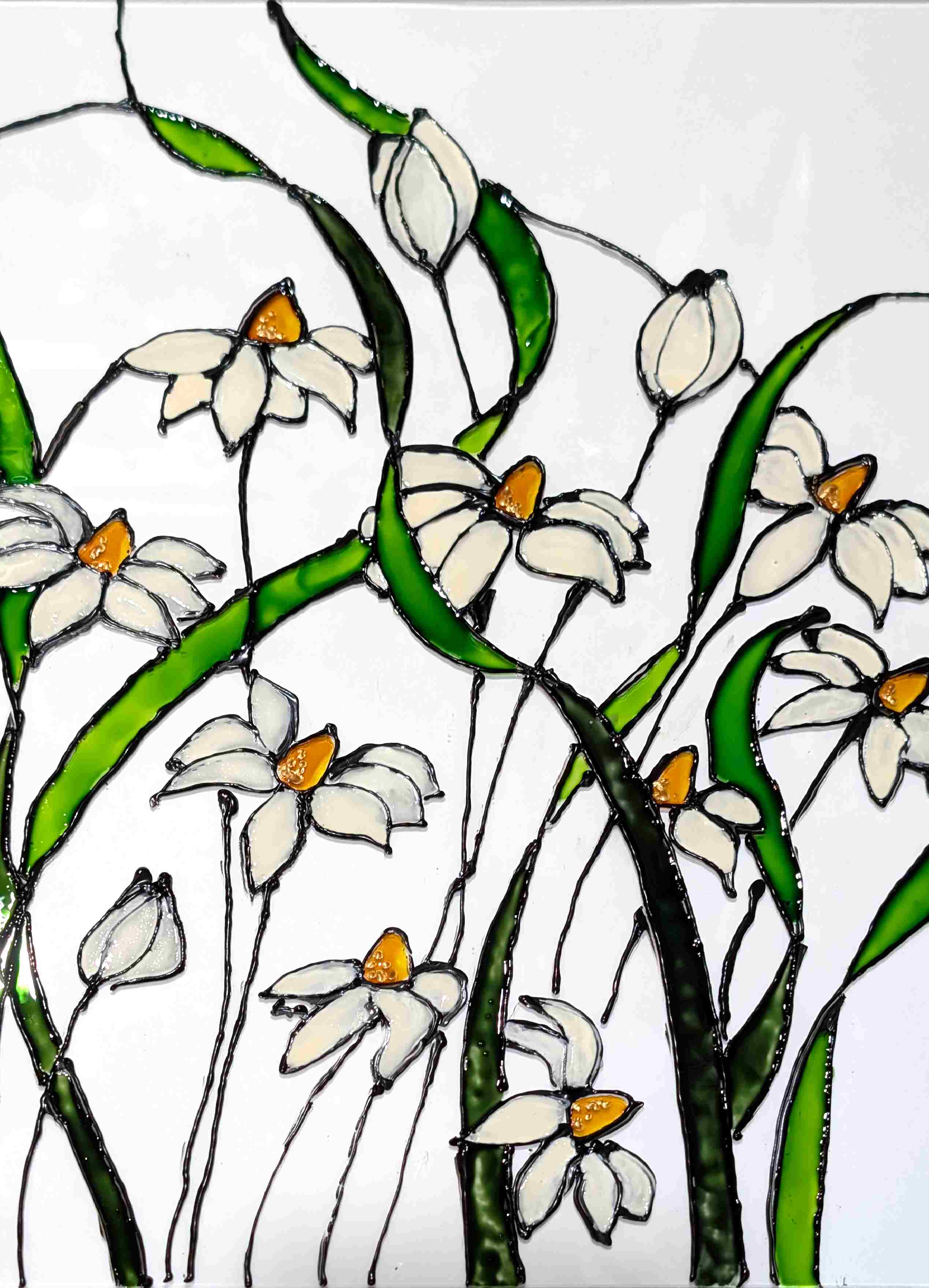 Trace the Design: Place your chosen design beneath the glass and trace it using liquid leading. This creates the outlines of your stained glass.