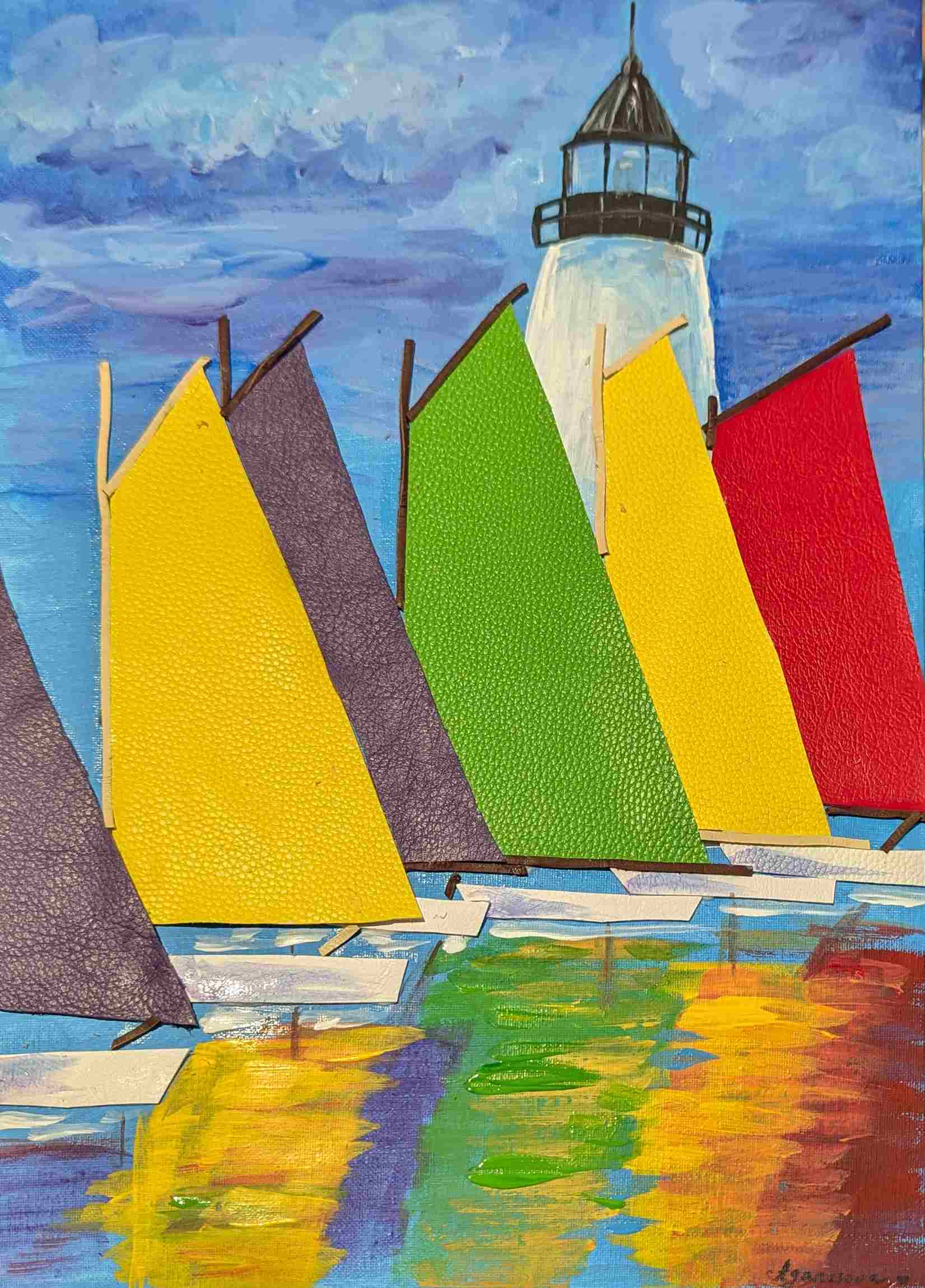 Let’s explore the differences between adult and children’s art classes at Rush In Art Academy of Ann Arbor on the sample of Sailboat art projects given to adult art class on 7/18/23: